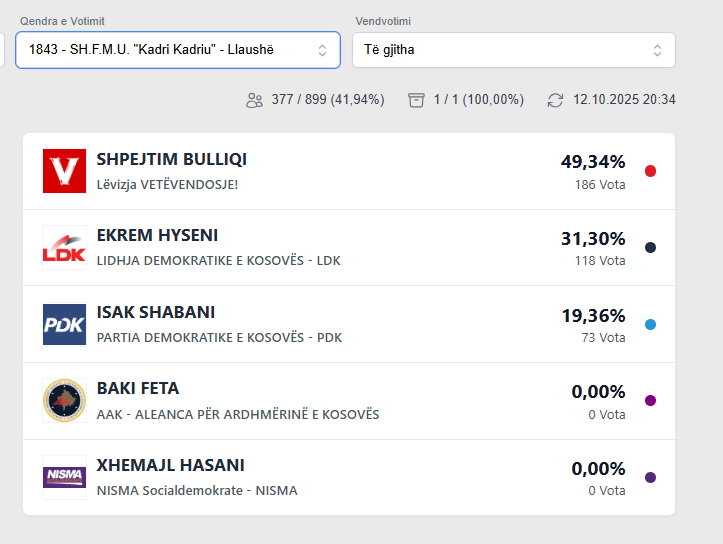 Podujeva Rezultati i zgjedhjeve në Llaushë October 12, 2025 Rezultati i zgjedhjeve në Llaushë Më poshtë rezultati: Post navigation Previous: Fillon festa në Podujevë nga Lëvizja VetëvendosjeNext: Rezultati i zgjedhjeve në Buricë