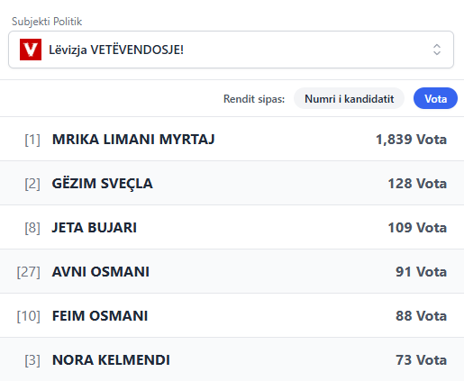 Mbi 10% të numëruara, këta janë më të votuarit e VV-së në Prishtinë