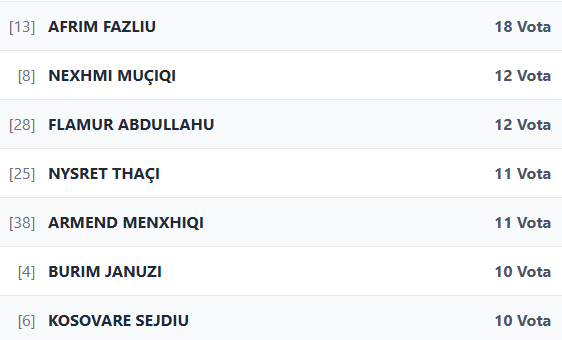 Më poshtë lista ekskluzive nga PodujevaSot e kandidatëve më të votuar, ndërsa janë numëruar rreth 10.62% e votave: