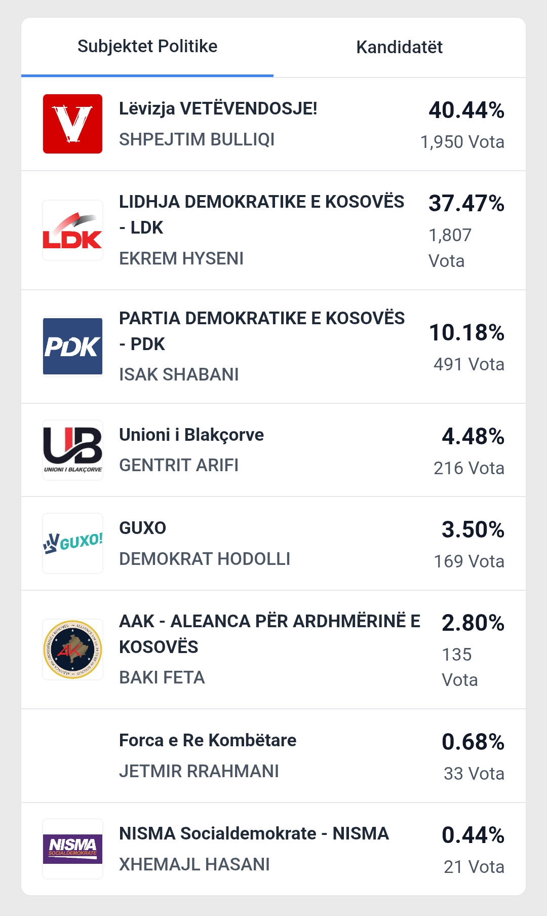 14% të numëruara në Podujevë, kjo është renditja e partive politike për asambleistë