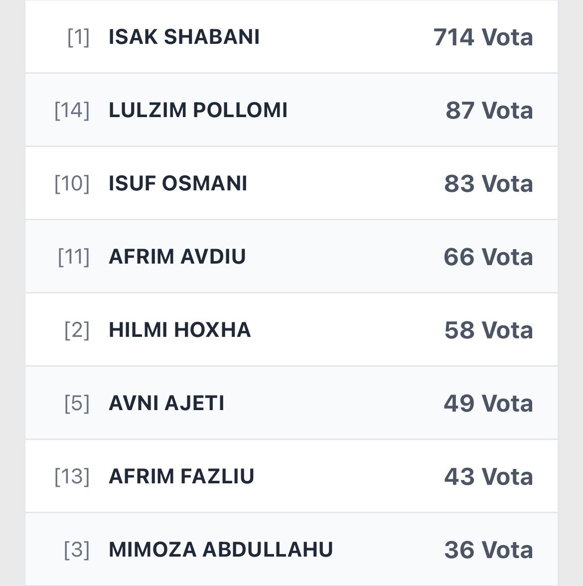 Më poshtë rezultatet e PDK-së: