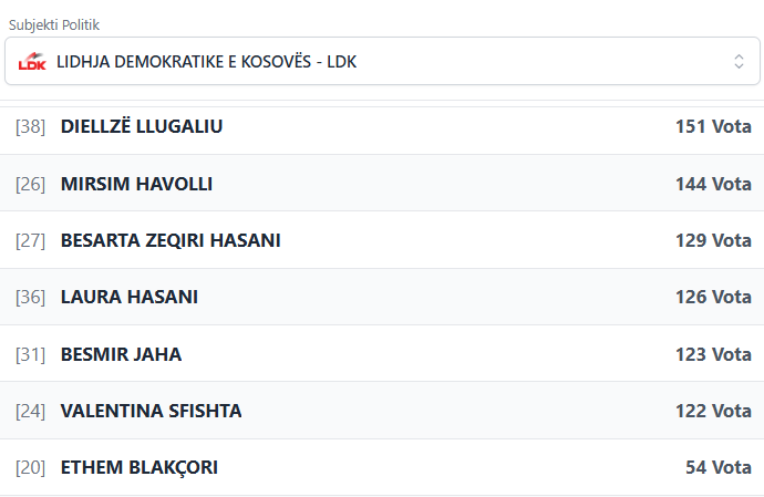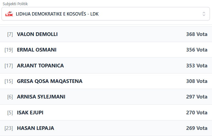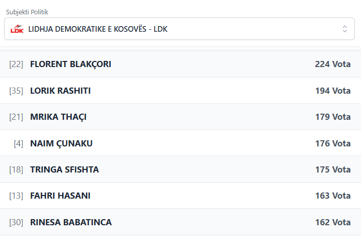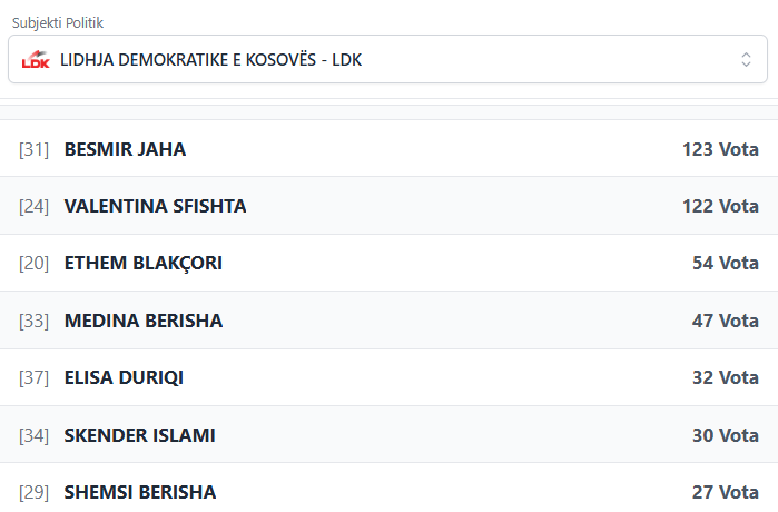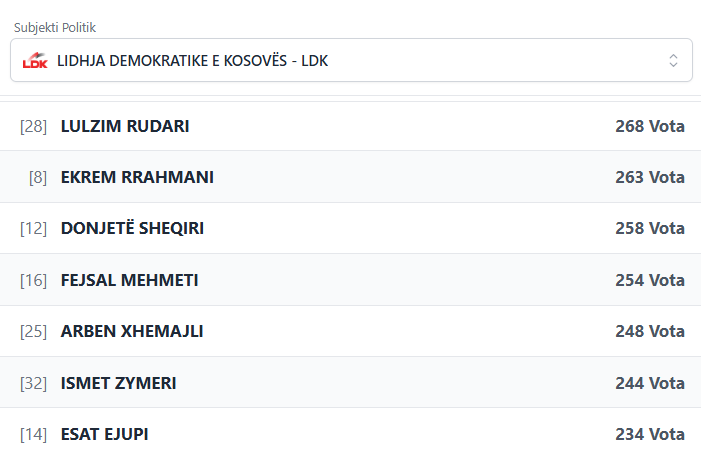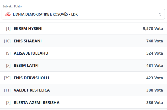 PodujevaSot është duke publikuar rezultatet e partive dhe kandidatëve më të votuar të LDK-së.