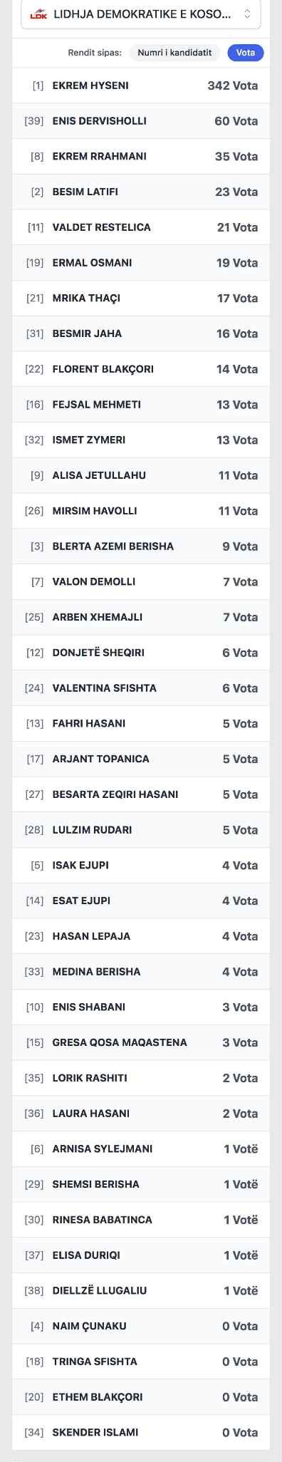 Këta janë më të votuarit e LDK-së në Podujevë nga votat e diasporës