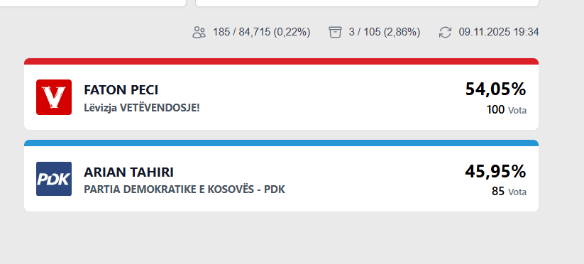 Lajme Fillon numërimi në Mitrovicë, rezultat befasues November 9, 2025 Ka filluar numërimi i votave në Mitrovicë. Më poshtë rezultati momental: Post navigation Previous: LAJMI I FUNDIT UBO: 77% e votuesve të Uran Ismailit në raundin e parë votuan Ramën në balotazhNext: Ymeri: E pritshme fitorja e Përparim Ramës në Prishtinë