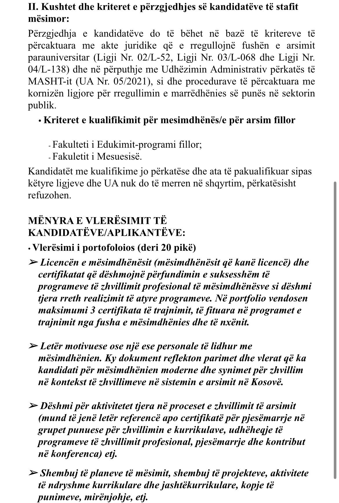 Podujevë: Hapet konkurs pune për mësimdhënës