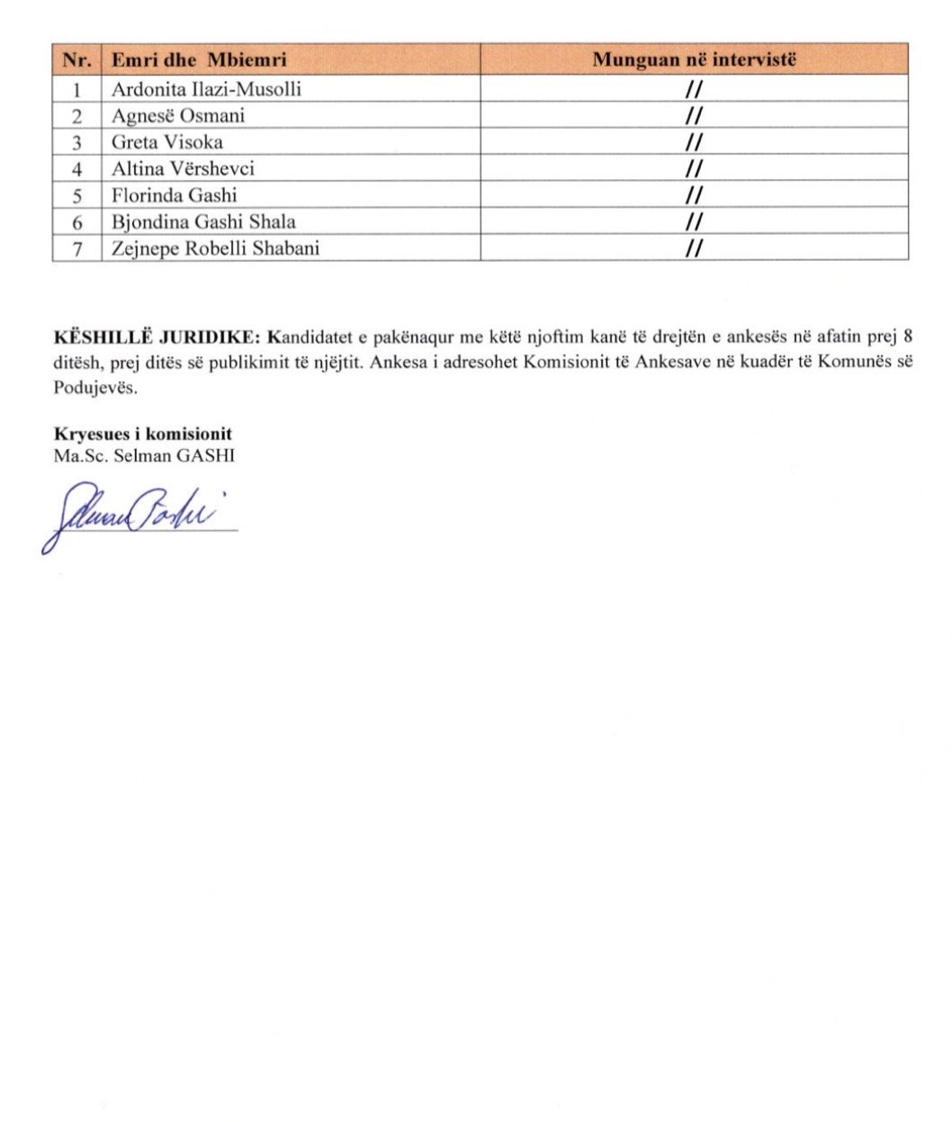 Komuna e Podujevës ka publikuar rezultatet përfundimtare për mësimdhënës.