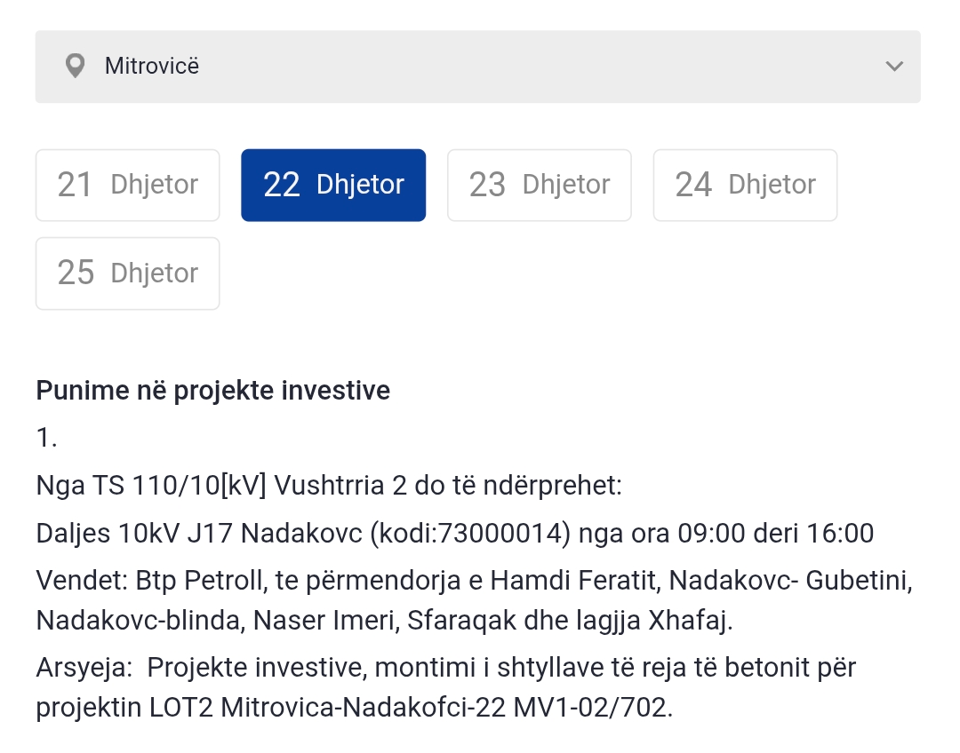 Këto vende të Kosovës do të mbesin pa rrymë nesër (e hënë, 22.12.2025)