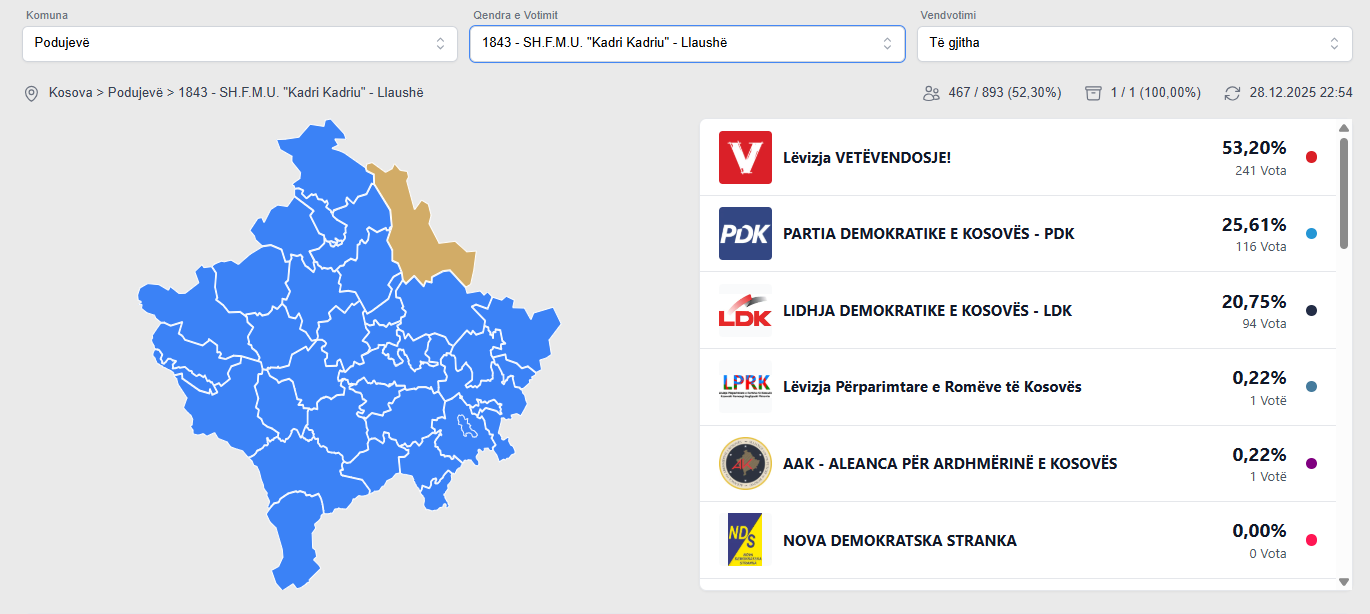 PodujevaSot ka siguruar të dhënat nga të gjitha vendvotimet e Podujevës.