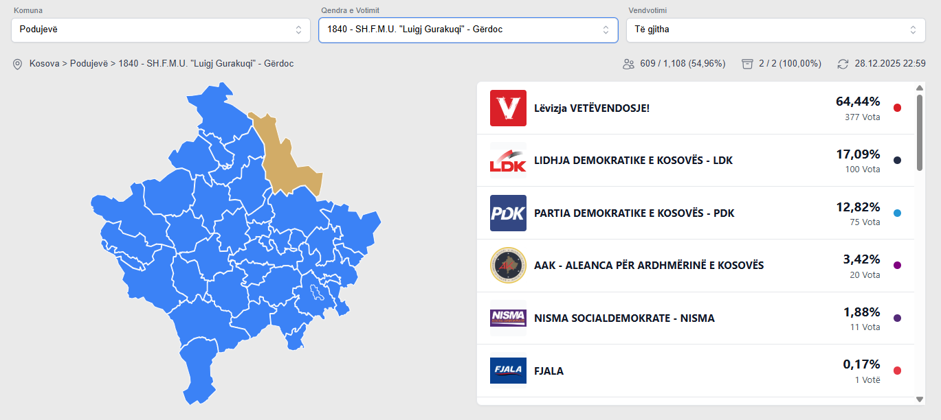 PodujevaSot ka siguruar të dhënat nga të gjitha vendvotimet e Podujevës.