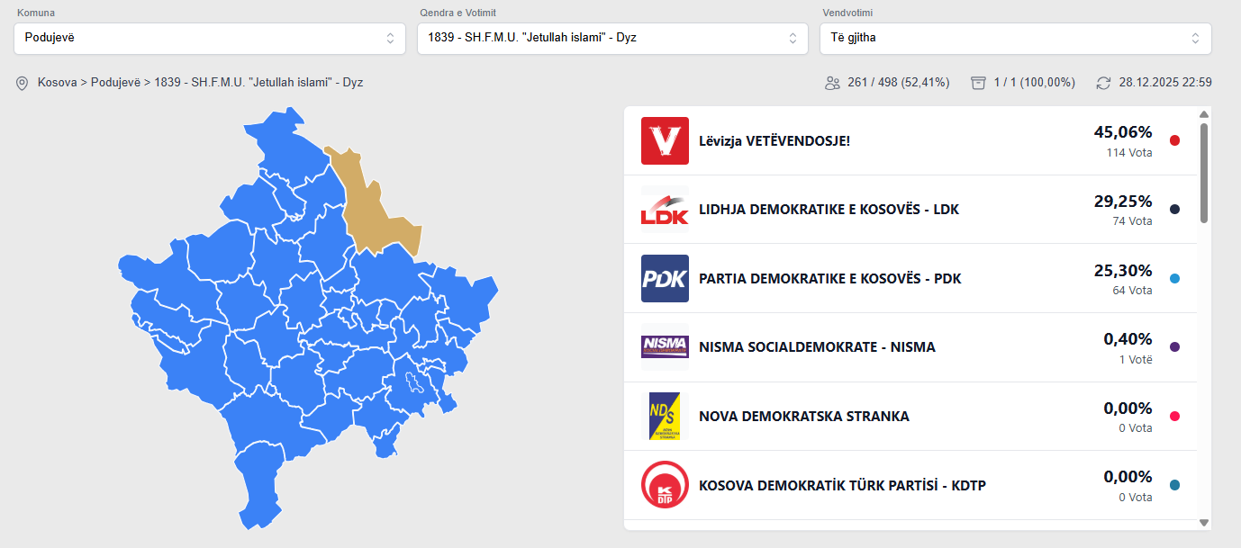 PodujevaSot ka siguruar të dhënat nga të gjitha vendvotimet e Podujevës.