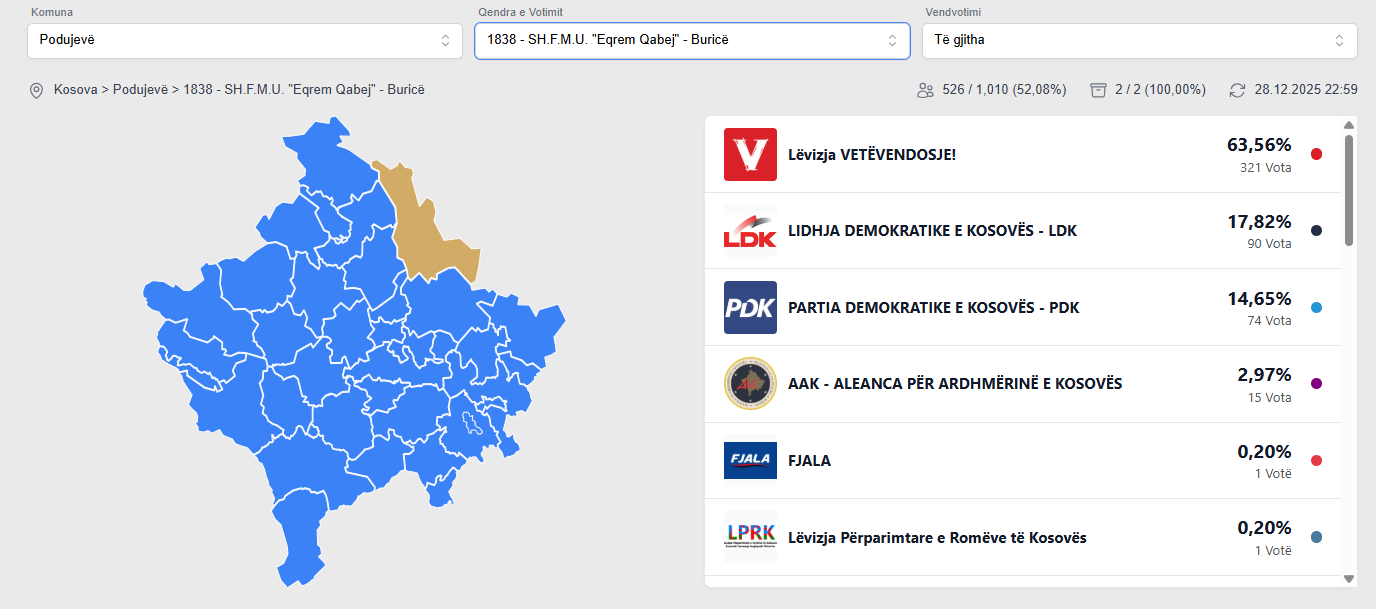 PodujevaSot ka siguruar të dhënat nga të gjitha vendvotimet e Podujevës.