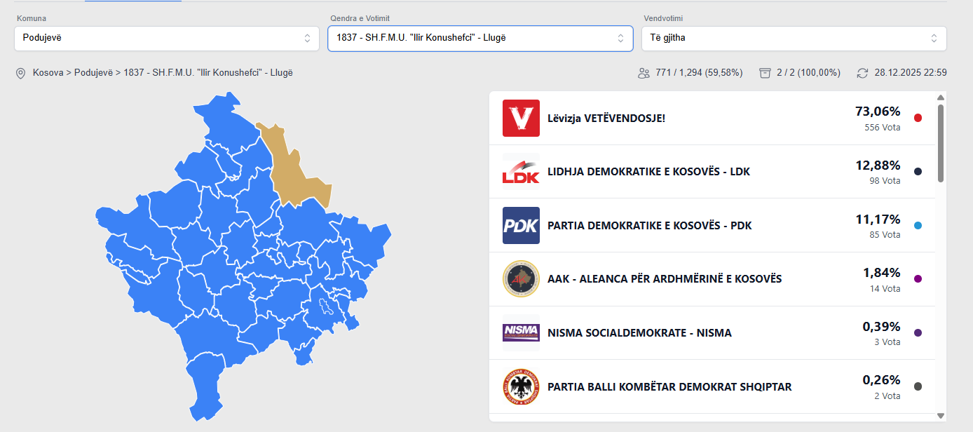 PodujevaSot ka siguruar të dhënat nga të gjitha vendvotimet e Podujevës.