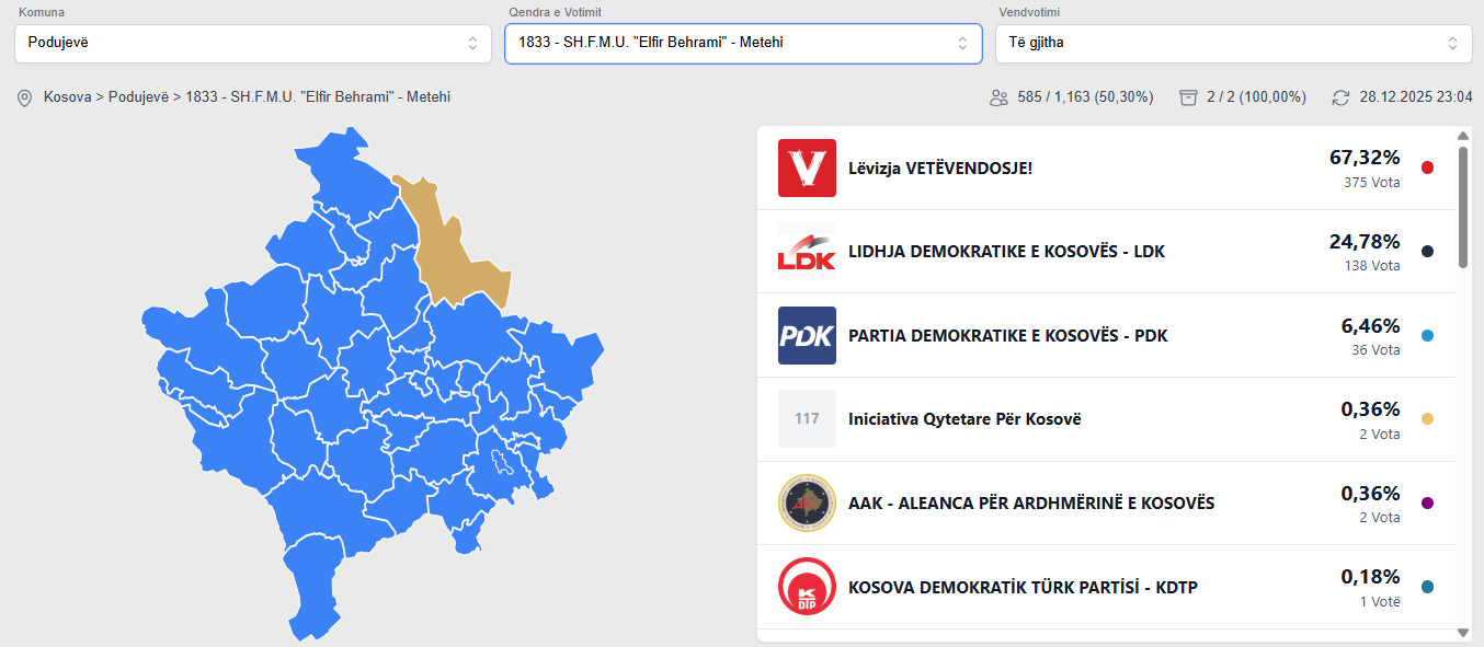 PodujevaSot ka siguruar të dhënat nga të gjitha vendvotimet e Podujevës.