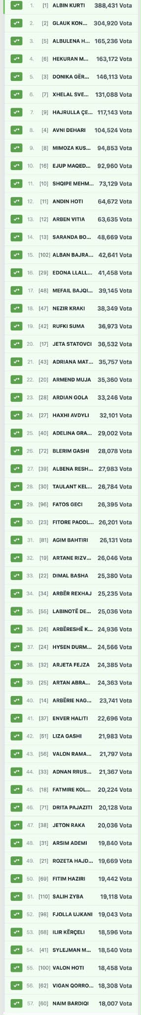 Lëvizja Vetëvendosje si fituese e zgjedhjeve një ditë më parë mbërriti në 57 ulëse në Kuvend, duke e marrë një nga PDK-ja që pas rezultateve preliminare i kishte 23.