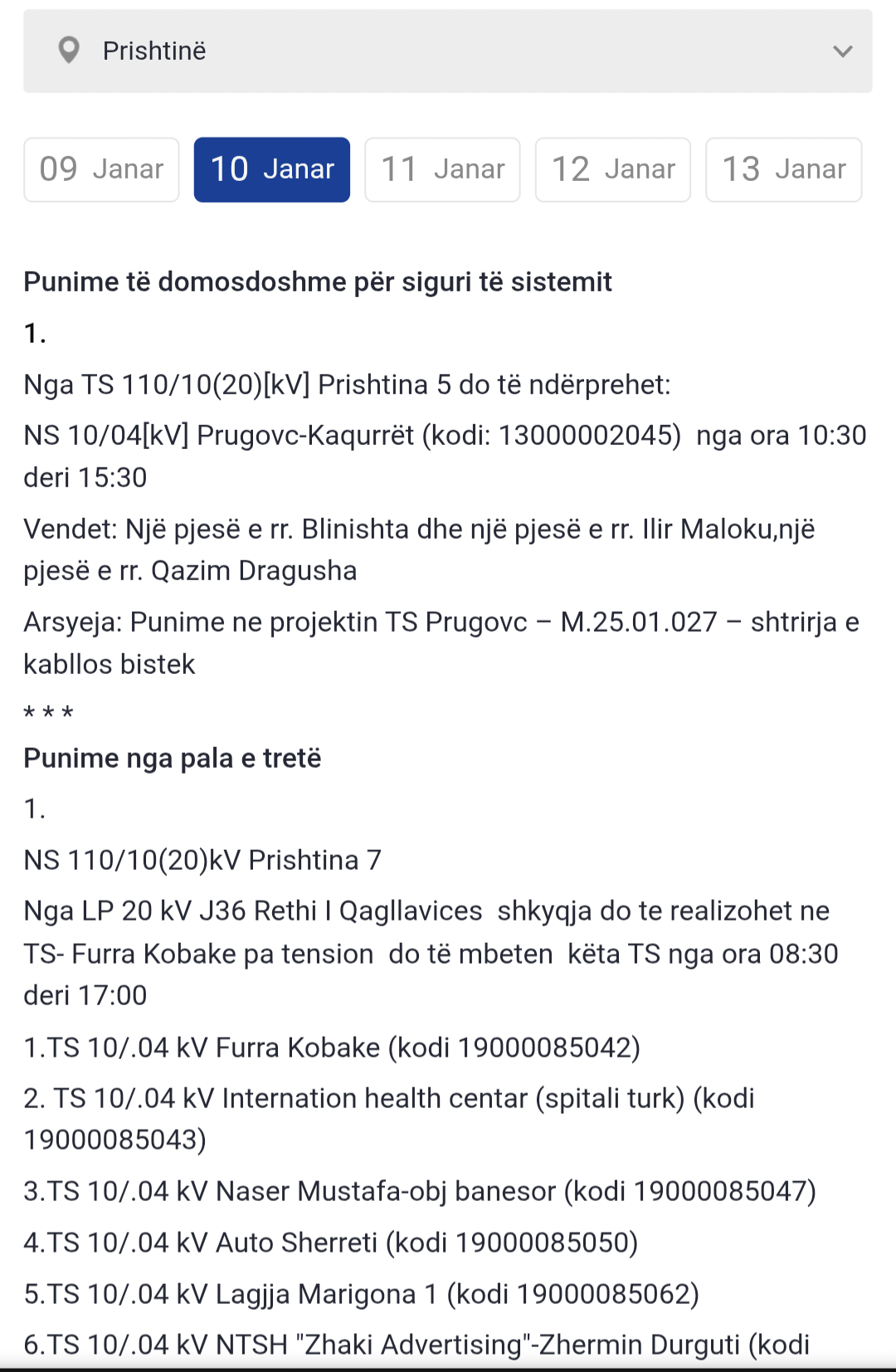 Këto vende të Kosovës do të mbesin pa rrymë të shtunën (10.01.2026)