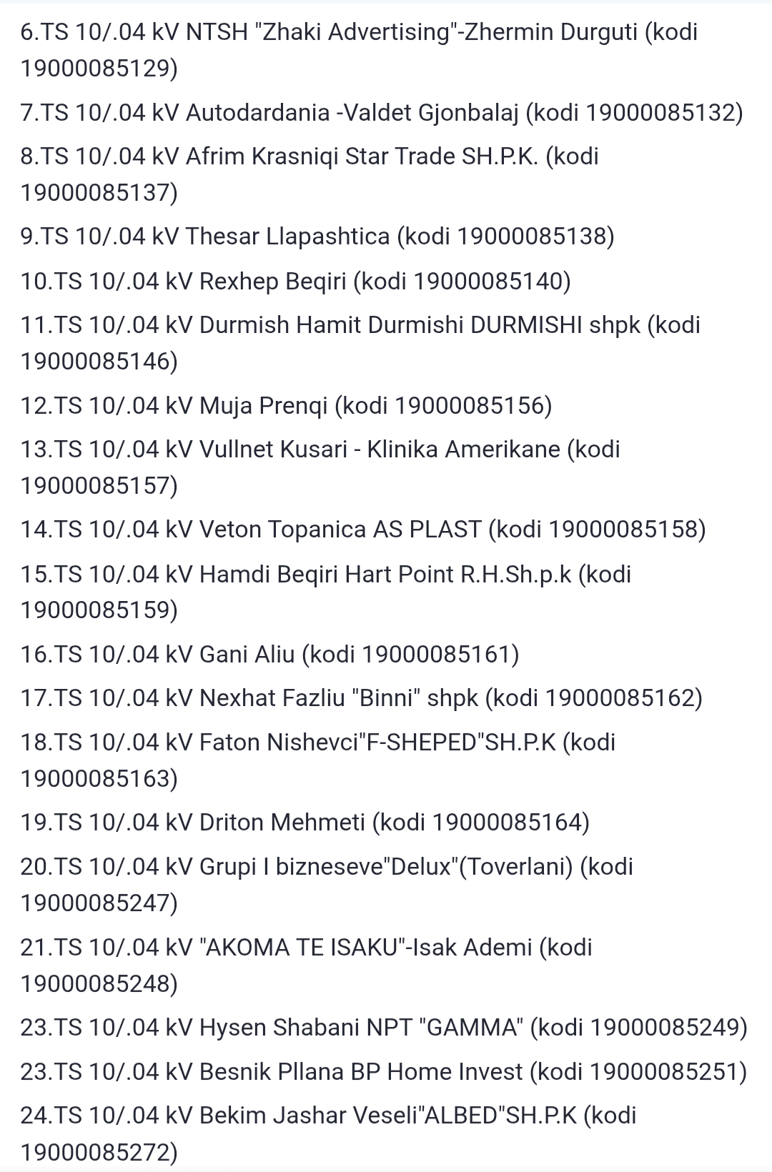 Më poshtë lista e plotë e vendeve që mbesin pa rrymë: